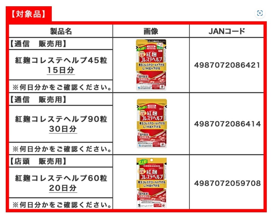 ‘붉은 누룩’으로 만든 영양제로 이것을 먹었다가 신장 질환을 호소하며 26명이나 입원한 것으로 확인됐습니다. 총 3가지 제품으로 고바야시 제약이 제조한 ▲붉은 누룩 콜레스테롤 헬프 ▲나이시('내장지방'의 줄임말) 헬프+콜레스테롤 ▲낫토 웃키나제 사라사라 쓰부 골드가 이에 해당됩니다.